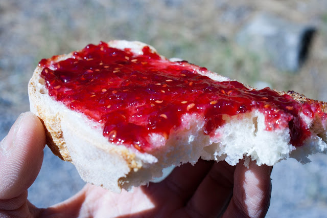 I love the culinary magic that happens when you go camping. Suddenly you're okay with eating slabs of bread with slathers of jam, eggs with kimchi, cookies with beer, all off of the muddy hood of a car. Paleo dieting aside, everyone licks the same knife and we suddenly all have herpes. This was somehow the least prepared we were for any trip. What cooking? What lights?